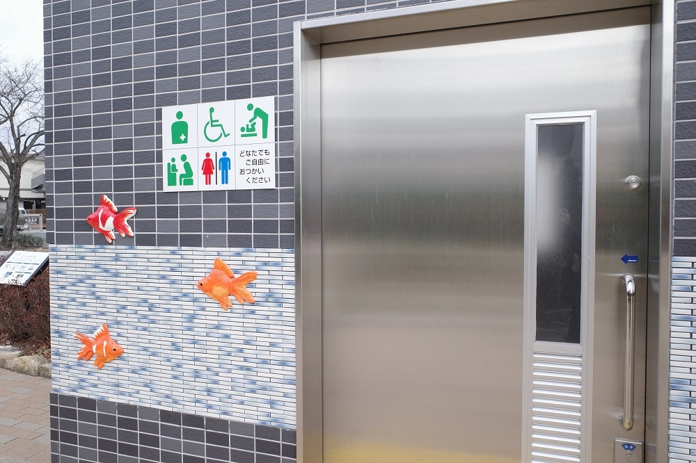 江戸川区船堀にある「えどがわ金魚公園」。 金魚の遊具がとってもかわいいです。 隣には「堀口養金所」もあります。 地面やトイレにもたくさんの金魚がいます。