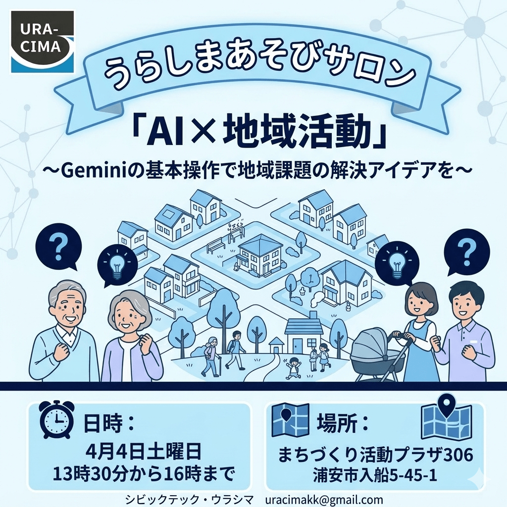 4月の「うらしまあそびサロン」はAI体験ワークショップ。Geminiの基本操作などを学ぶ。