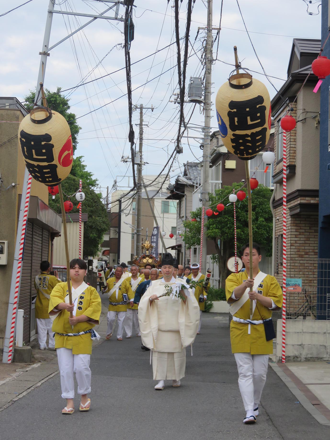 30分ほどして、西組の提灯飾りのある通りに出るとさらに大勢の人が行列を待っていた。祭り好きの多い浦安らしい光景だ。