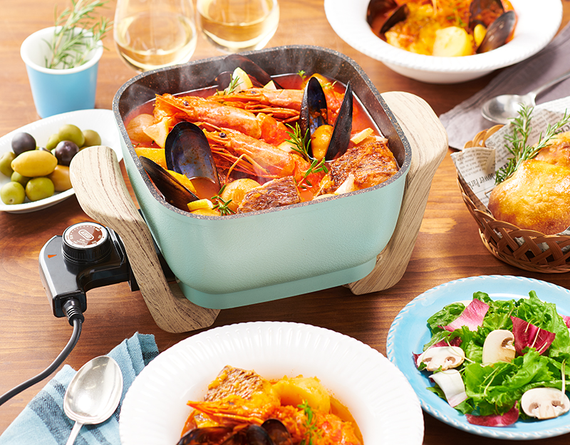 ※画像はイメージです。プレゼント対象は「コンパクトマルチ電気鍋」のみとなり、周囲の小物類(お皿やグラスなど)は含まれません。あらかじめご了承ください。
