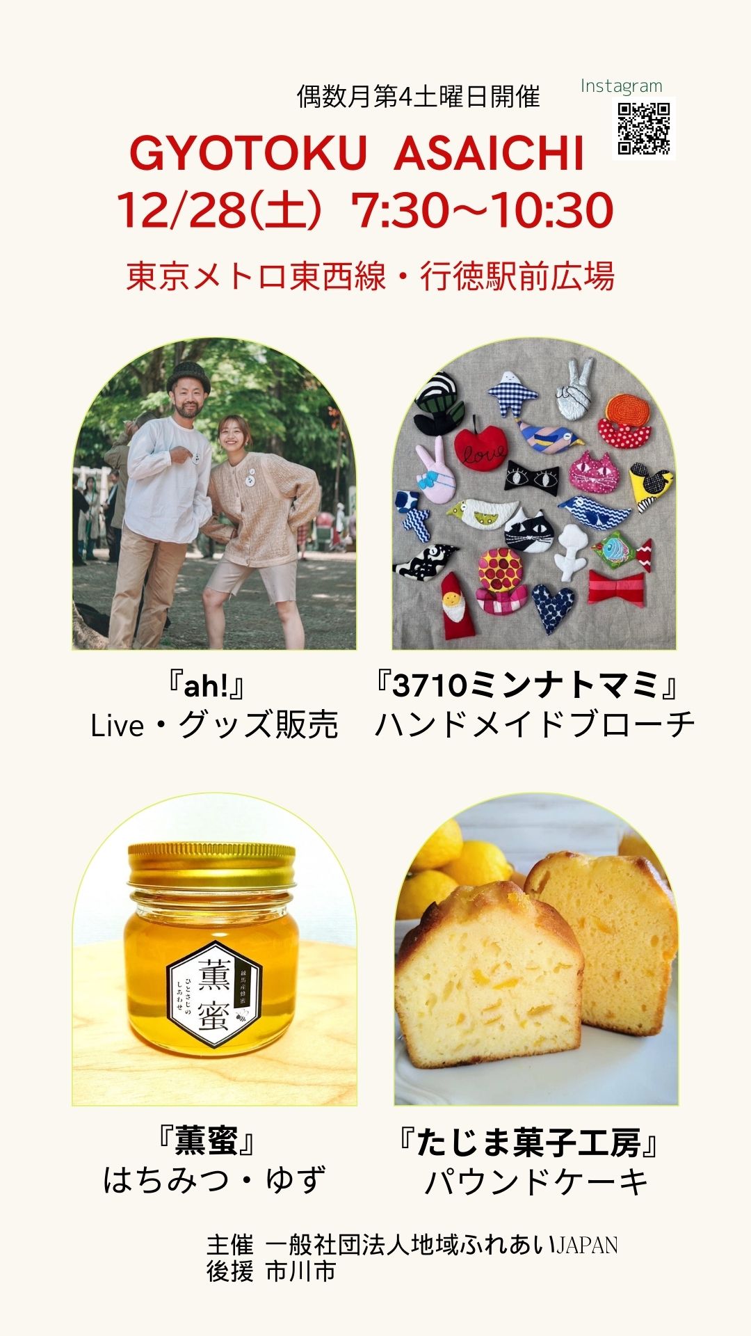 2024年12月28日(土)、行徳駅前広場にて「第1回 行徳朝イチ」が開催されます!