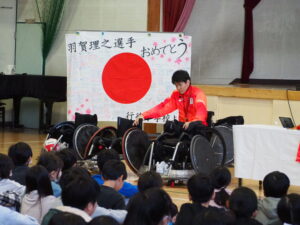 パリ2024パラリンピック車いすラグビーの金メダリスト、羽賀理之選手が12月5日(木)、出身校である行徳小学校を訪問し、児童との交流を図った。