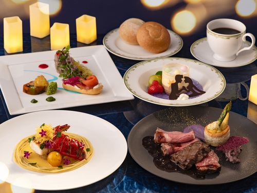 ゲストがボートに乗り込み出発するシーンを表現した前菜に始まり、初めての塔の外に出たラプンツェルの喜びにあふれる様子を描いた魚料理、そして夜空に灯りが広がるランタンフェスティバルを迎えた夜のお城や町をイメージした肉料理など、アトラクションのさまざまなシーンを、コース料理で表現。