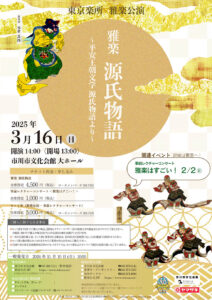 希望者ははがきに〒住所、氏名、年齢、電話番号を明記して、〒272‐0143 市川市相之川3-2-13 ㈱明光企画「雅楽 源氏物語」係まで。締め切りは 2月27日(木)必着。