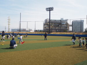 軟式野球場では浦安市と市川市の少年野球チームの小学生を対象に「高校生による野球教室」が行われた。