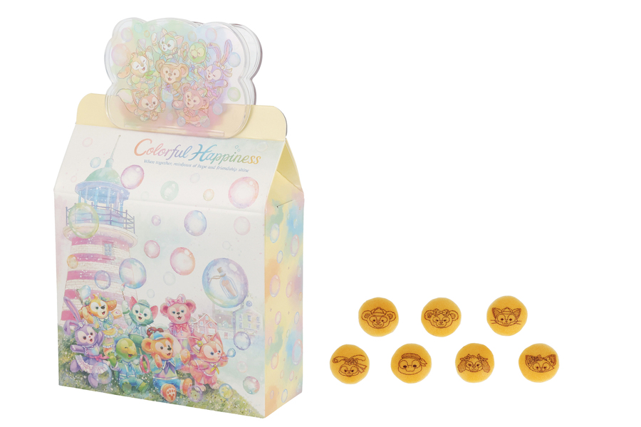 虹のようにカラフルなシャボン玉をモチーフにダッフィーたちの笑顔がキラキラと輝く