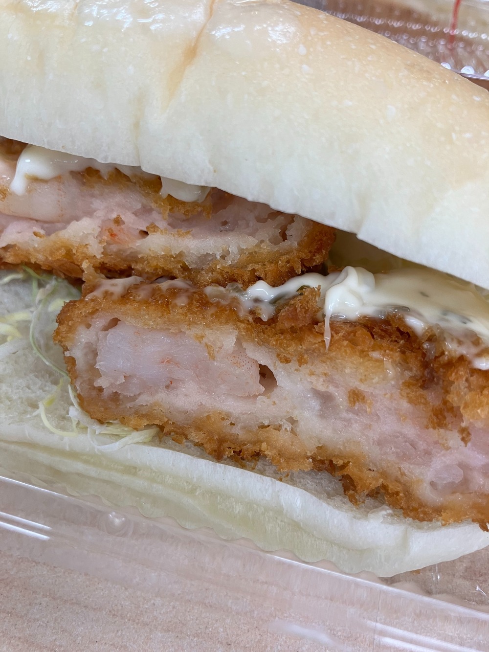 海老カツさくさく!食べ応えアリです。揚げパンは見た目よりあっ