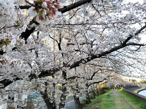南岸が散り始めた頃に、北側土手は満開となるか。