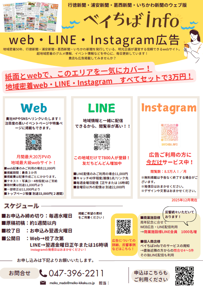 行徳新聞・浦安新聞・葛西新聞・いちかわ新聞はWeb版「ベイちばinfo」でも発信