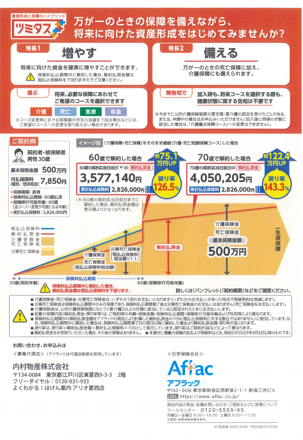 ご加入中の保険を生かした契約者様専用の見直しプランや専用お手続きを準備しております。アフラックの事はアフラックの専門店へぜひお越しください。