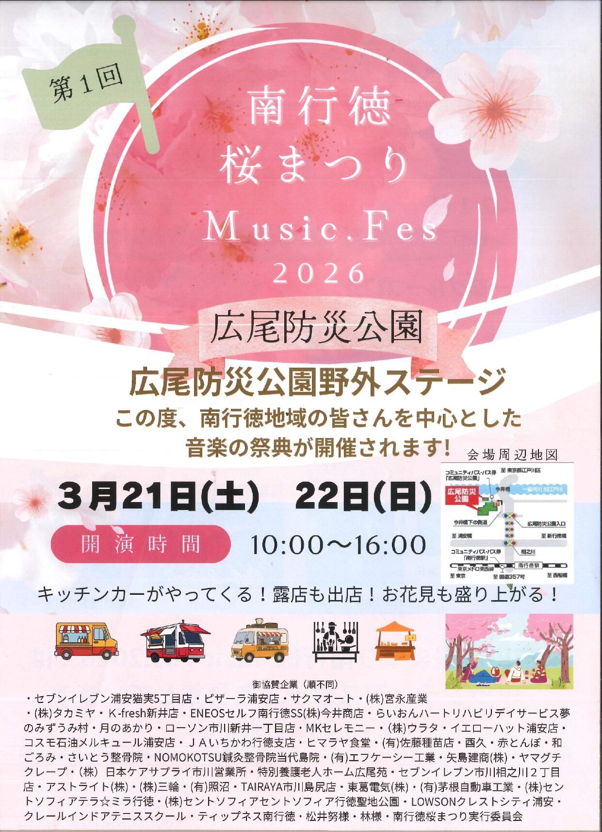 3/21(土)・22(日)第1回 南行徳 桜まつり Music.Fes 2026開催!広尾防災公園で音楽・グルメ・地域の絆を楽しむ2日間【行徳】