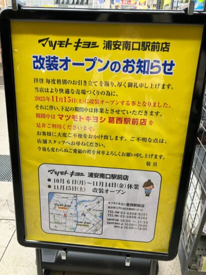 マツモトキヨシ浦安南口駅前店、11/15改装オープン予定【浦安】