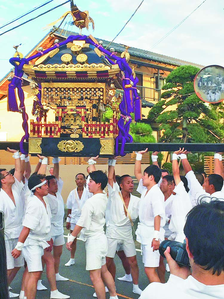 1日かけて四ヶ村を回り、最後の町・湊の渡御が終わると白丁(はくちょう。神輿を町会から町会へ引き渡す役目を担う人々)が宮神輿を担いで香取神社へ戻るのだが、ここからが最大の見せ場である宮入りだ。神社の前で数回揉んだ後、「神輿を境内へ入れろ」「入れるな」の大攻防戦。やっと境内へ入った後も「鳥居をくぐれ」「くぐらせるな」の熱いせめぎ合いが続き、祭りは最高潮に達する。