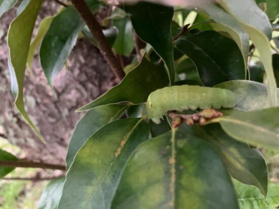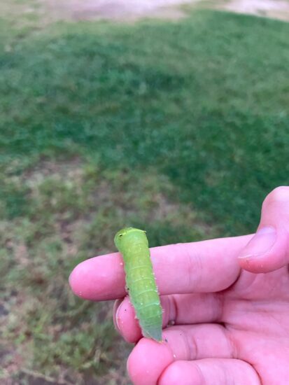 えんぴつ公園にあるグラウンドのど真ん中で迷子になっているアゲハ蝶の幼虫さんを発見。