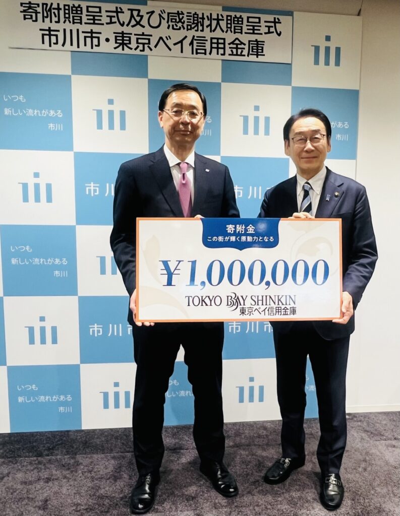 東京ベイ信用金庫が市川市に100万円を寄付
