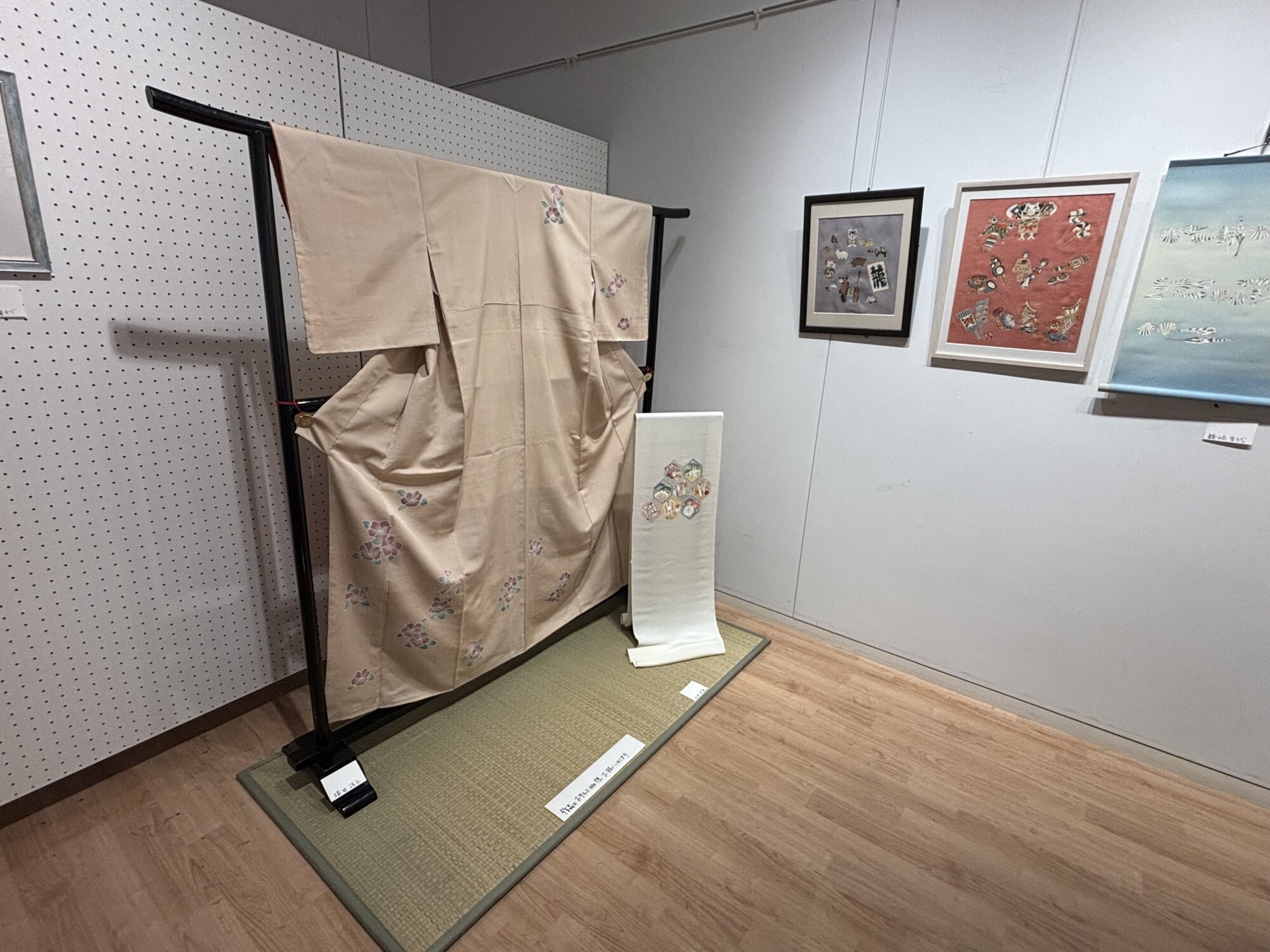 メイン会場の全日警ホール「八幡美術館」では、友禅工房・吐夢HOUSE による手描友禅染展「先客万来」や、千葉伸子氏の独創的な「千葉伸子彫刻展」が行われ、訪れた人々の目を楽しませました。