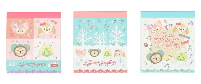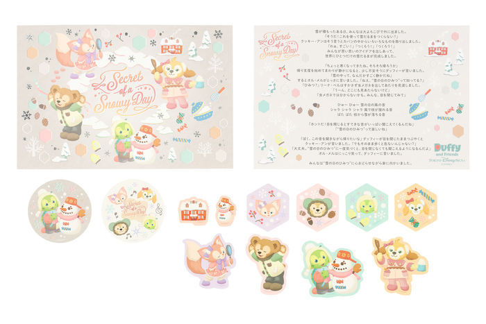 ダッフィーたちが「雪の日のひみつ」を探している姿が描かれたグッズ