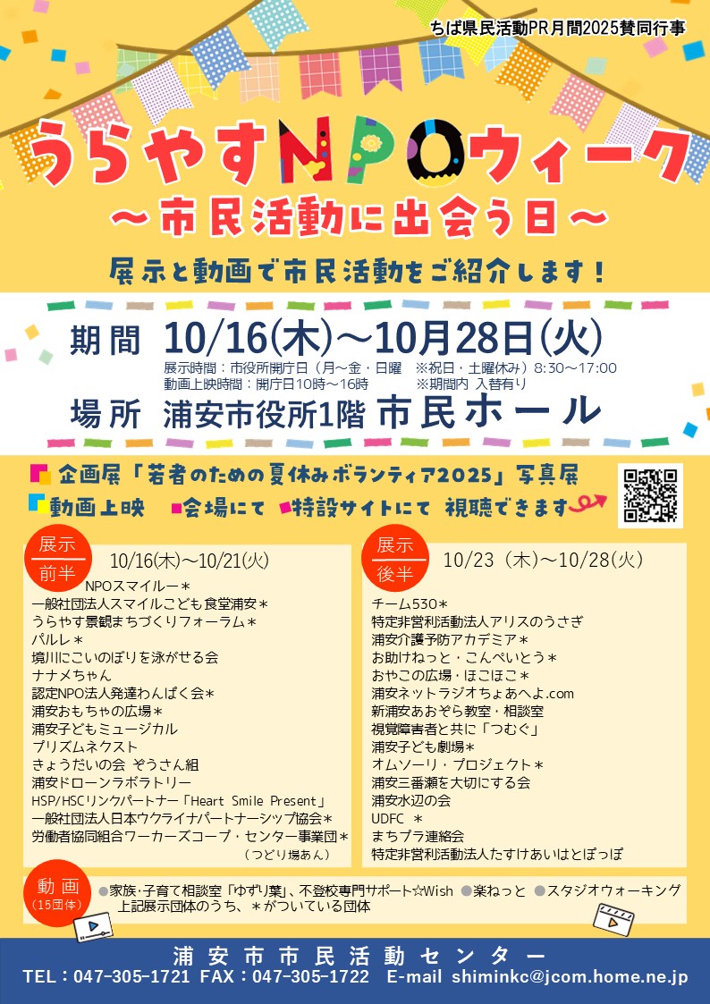 10/16(木)~28(火) うらやすNPOウィーク~市民活動に出会う日~【浦安】