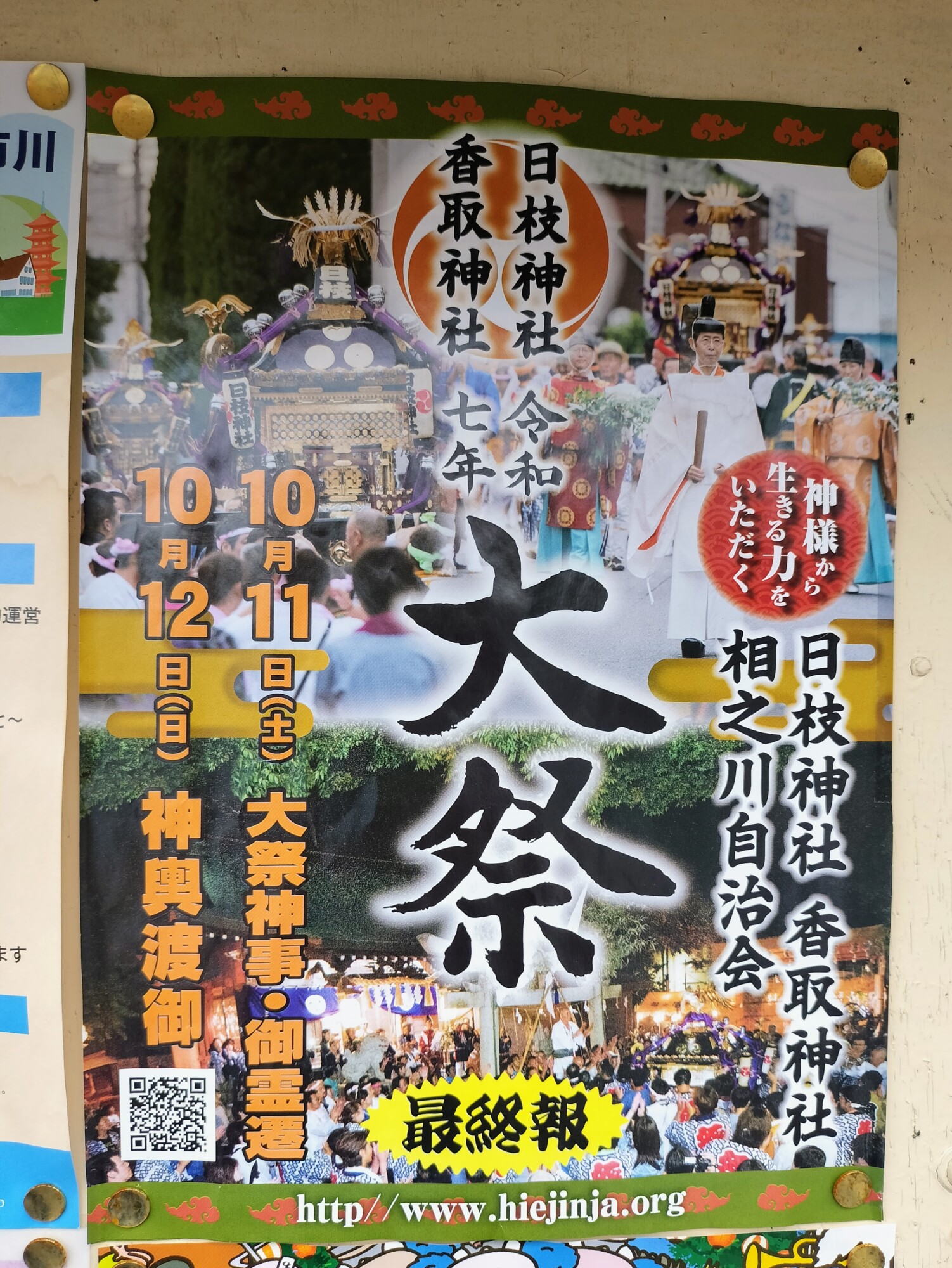 相之川1丁目にある日枝神社と香取神社の2社の大祭が、10月11日(土)・12日(日)に開催された。