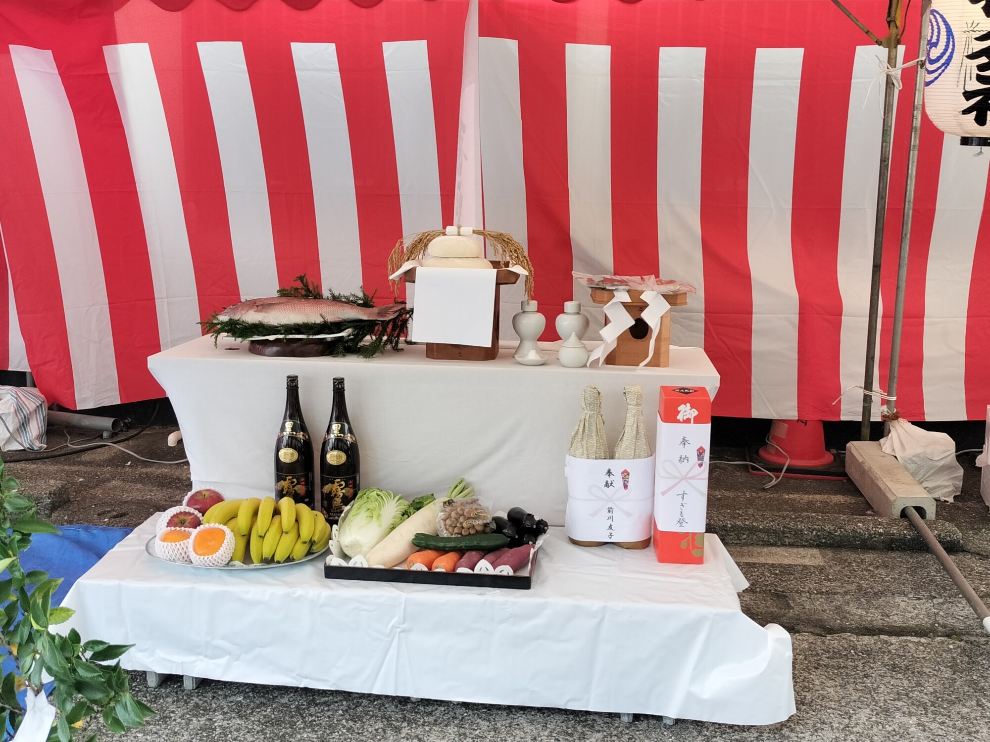各町には神酒所が設置され、餅、野菜や果物、酒、鯛などが供えられた。丸ごと一匹の鯛の大きいこと!