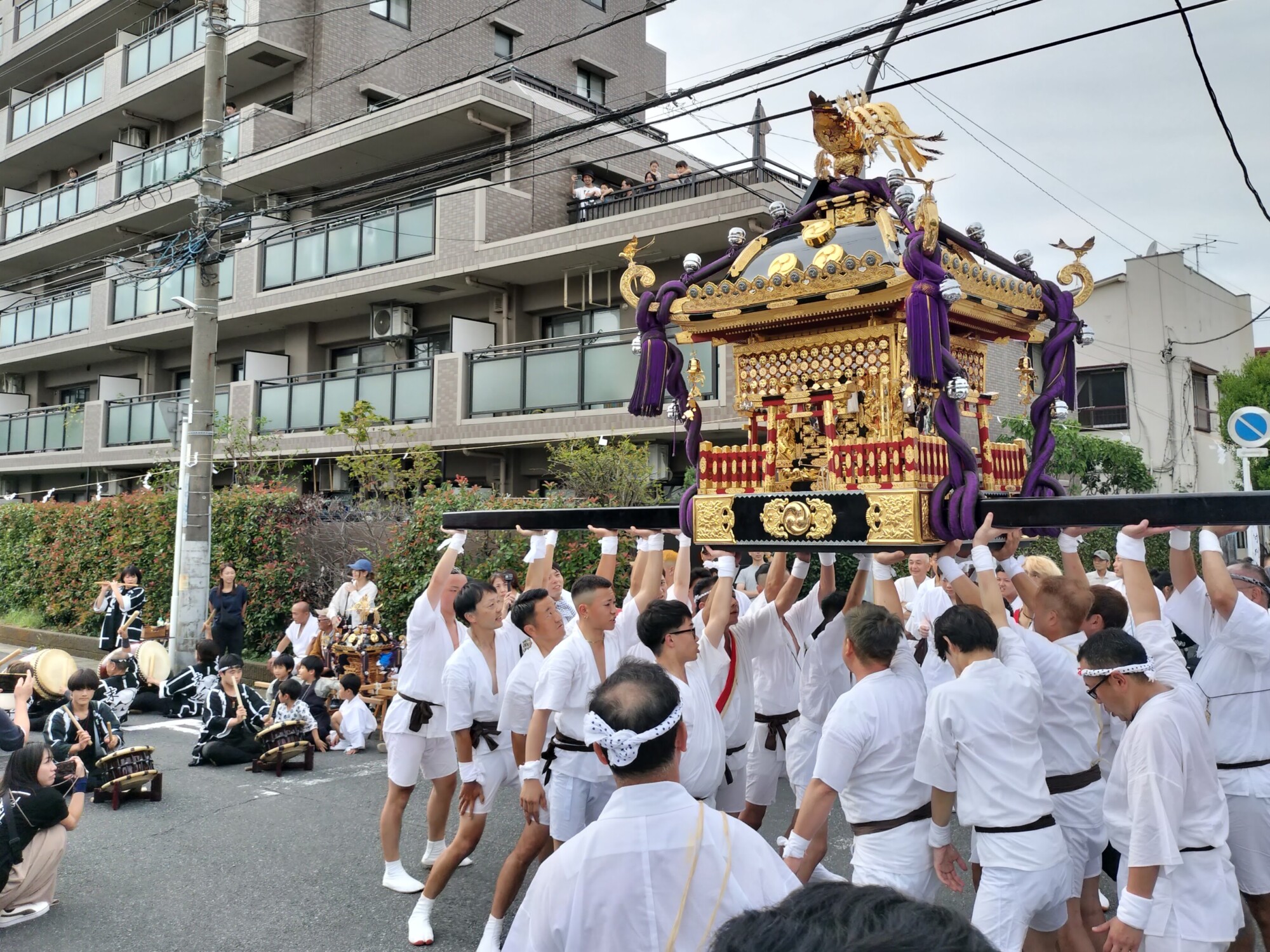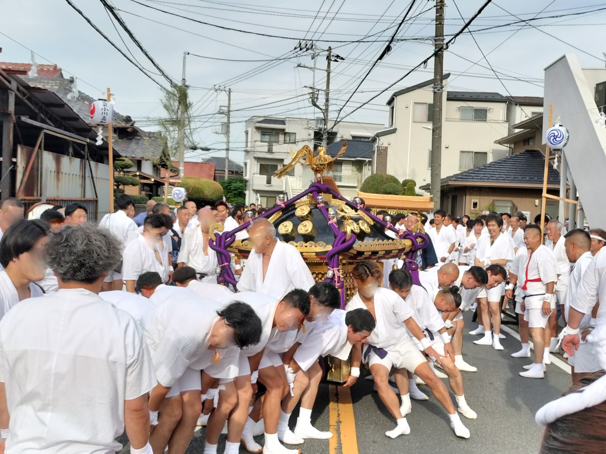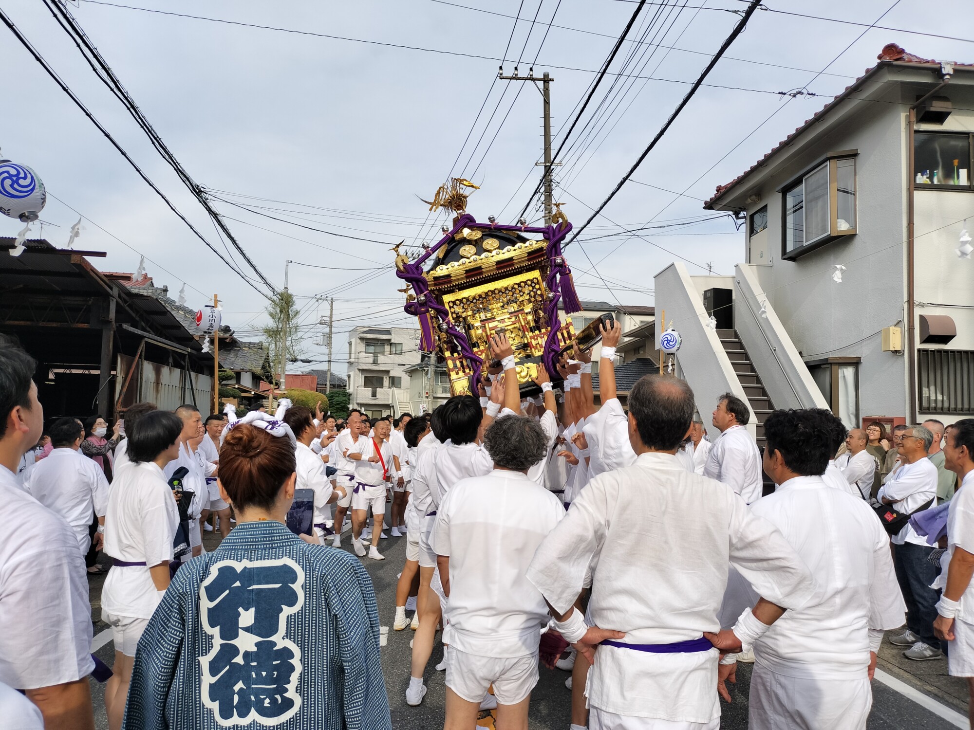 「わっしょい!わっしょい!」と声をあげながら、「行徳揉み」と呼ばれる行徳ならではの独自の揉み方で行徳の街を巡行する。
