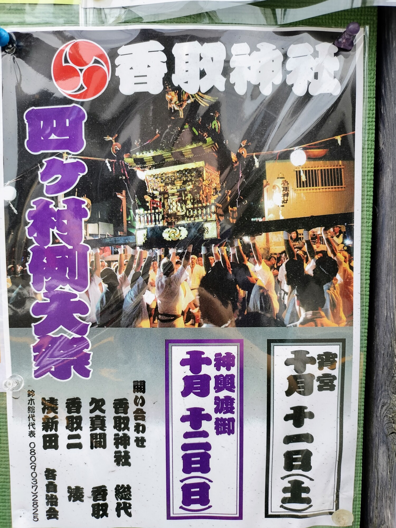 行徳地域の4つの町(欠真間、香取、湊新田、湊)の総鎮守・香取神社の3年に一度の大祭「四ヶ村例大祭」が10月11日(土)12日(日)の2日間にわたって行われた。