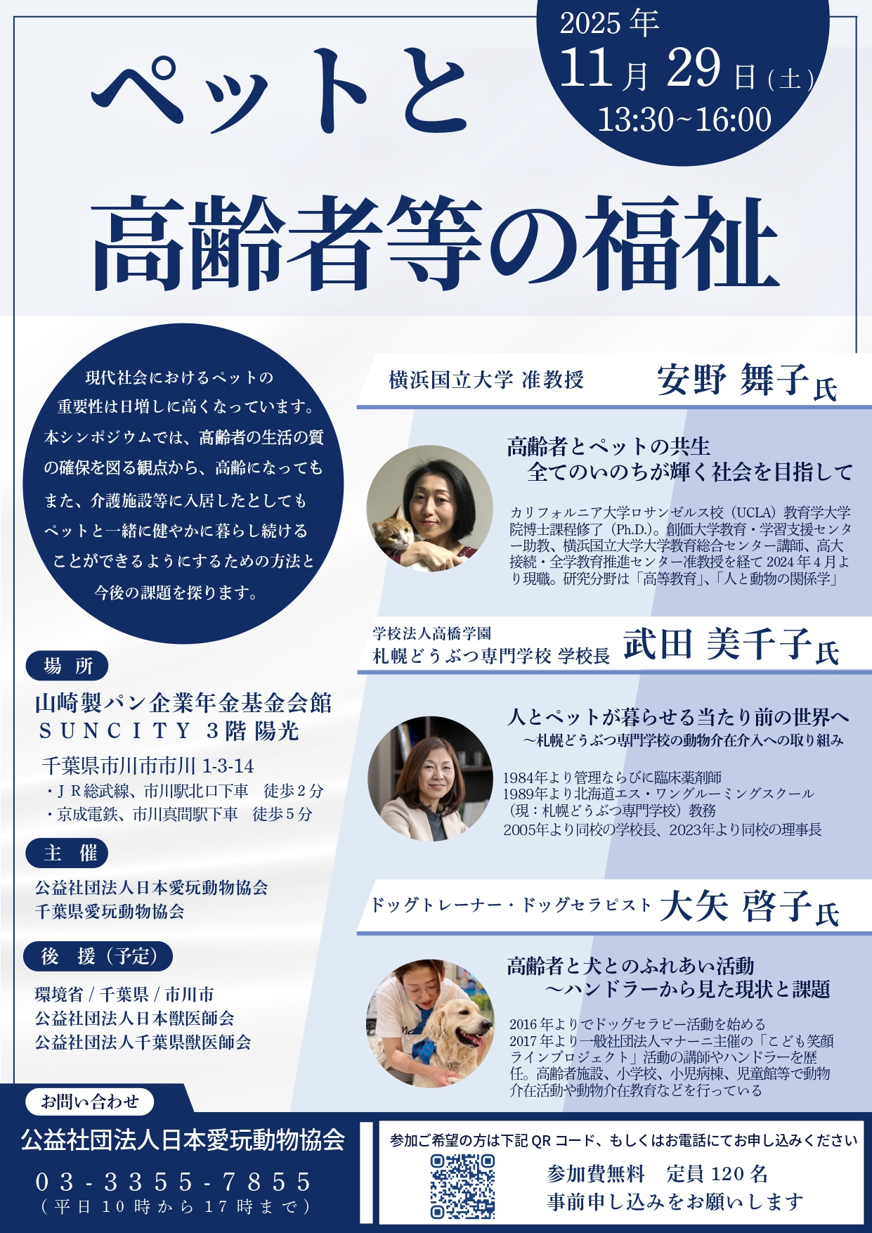 11/29(土)開催 「ペットと高齢者等の福祉」シンポジウム【市川】