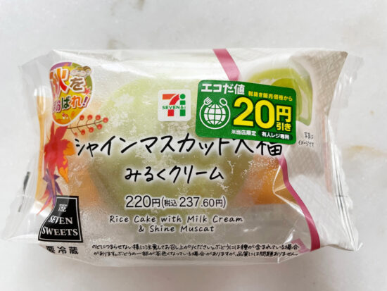 今日のおやつはセブンイレブンの秋のスイーツ2点。『香ばしカラメルのなめらかスイートポテト』は甘さを抑えたスイートポテトの上に少々苦め、なれど甘~いカラメルが乗っている。ちょっとべたべた+やわらかいので、スプーンかフォークで食べるのがおすすめかも。もう1つの『シャインマスカット大福みるくクリーム』は、その名の通り、薄い大福の皮の中に、クリームとマスカット入っている。マスカットは1粒丸ごと。こちらもちょっと食べにくかったけど、どちらもおいしかったです。