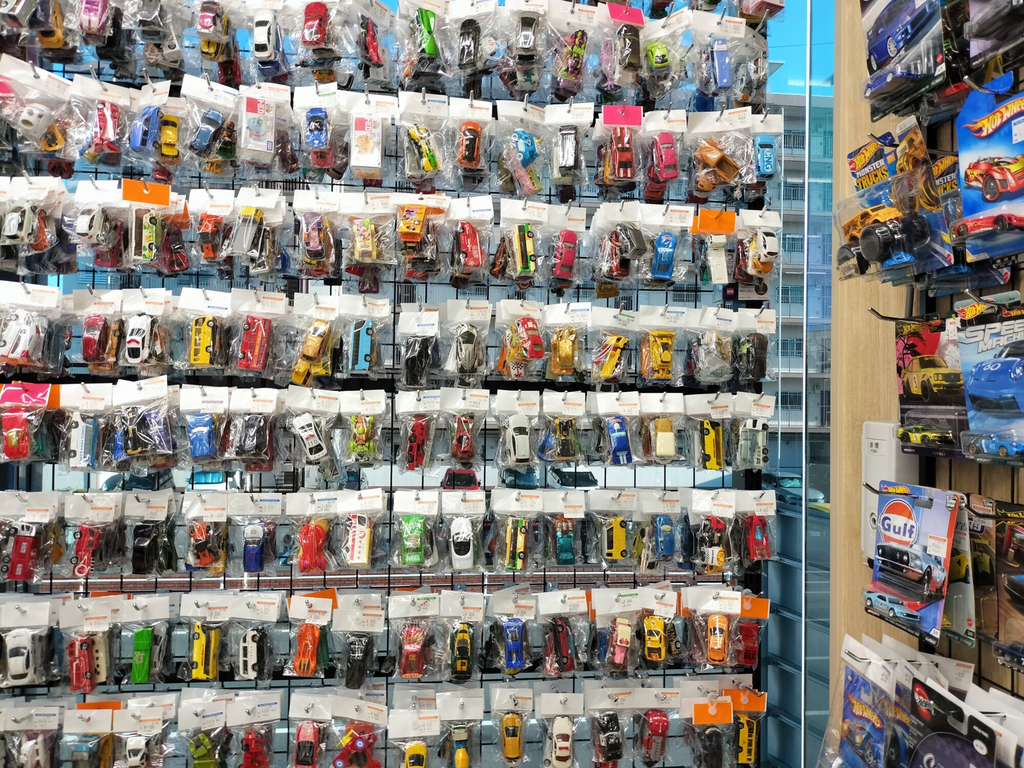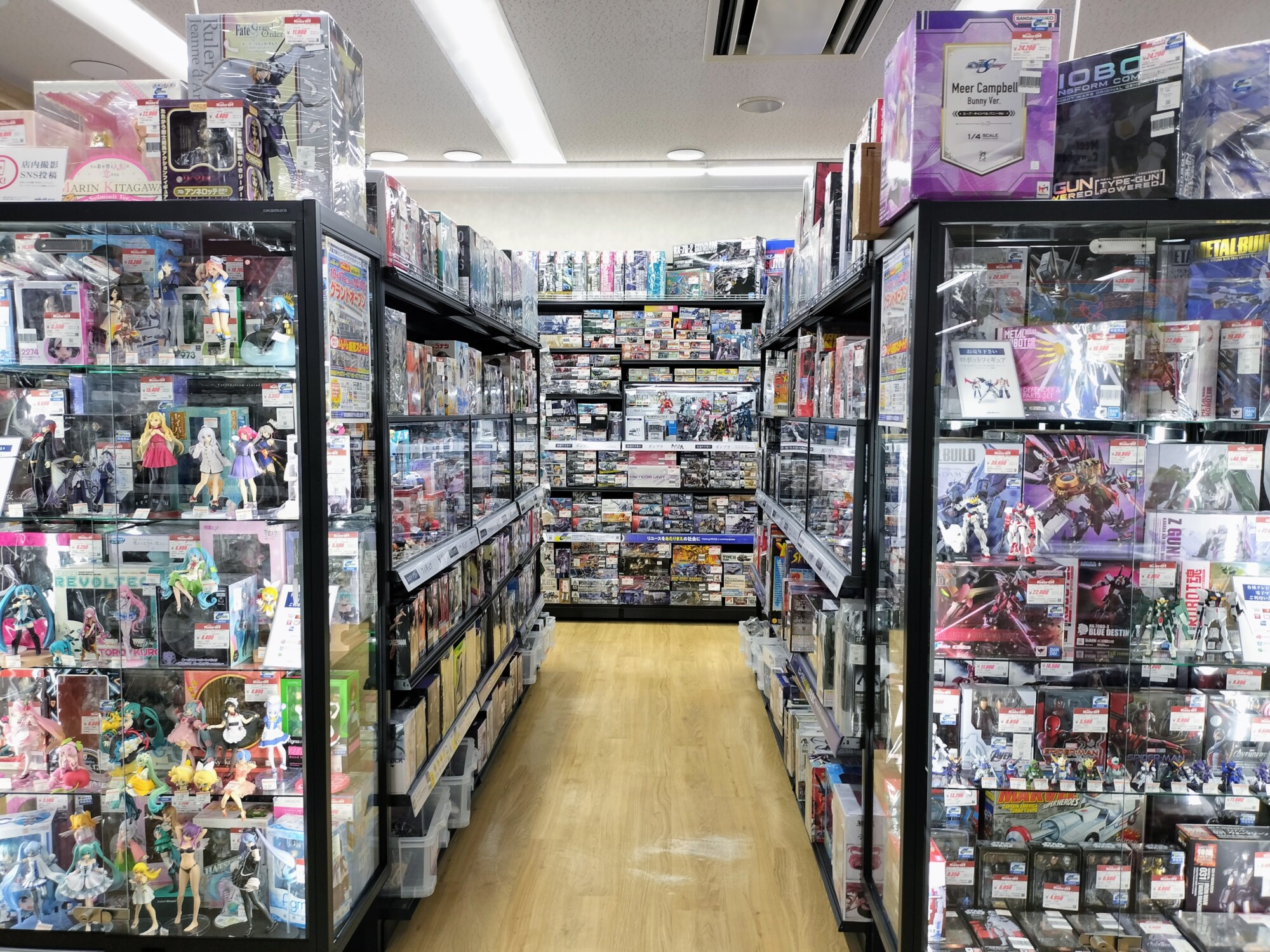 階段を上がって正面、キラキラと輝くトレーディングカードのコーナーが出迎える。右側のエリアはフィギュアやプラモデル、ミニカーや鉄道模型。子どもも大きいお友達も目が輝いてしまうだろう。