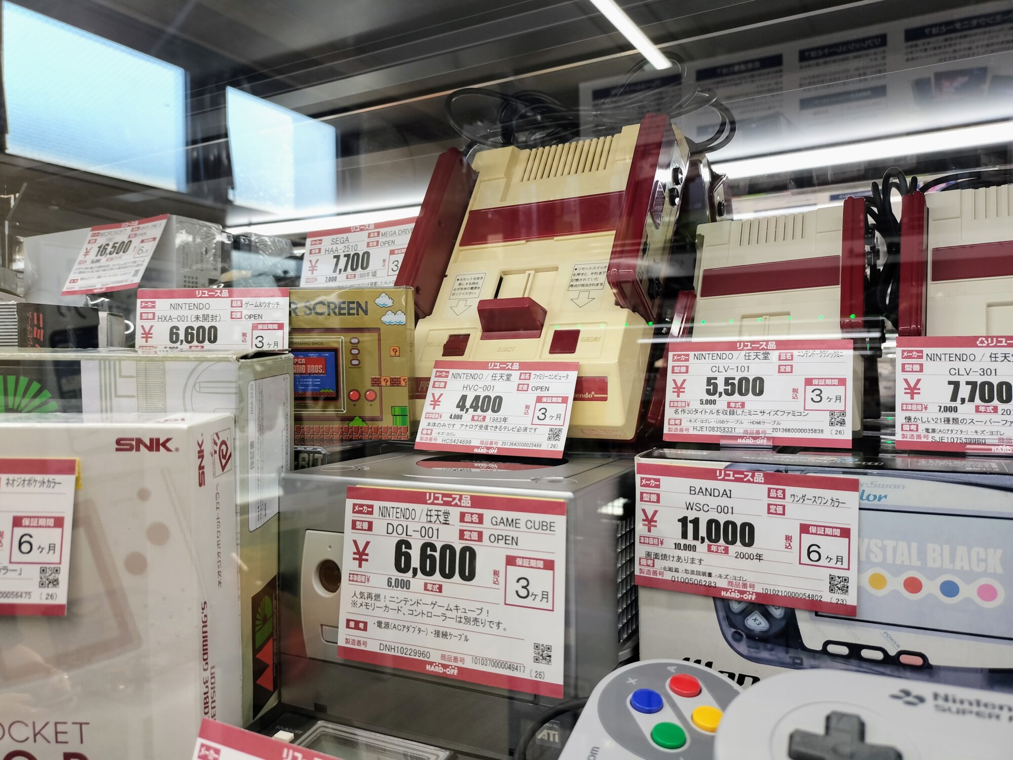 ゲーム機本体の棚には、子どもの頃遊んだあのファミコンが!4,400円!懐かしい!