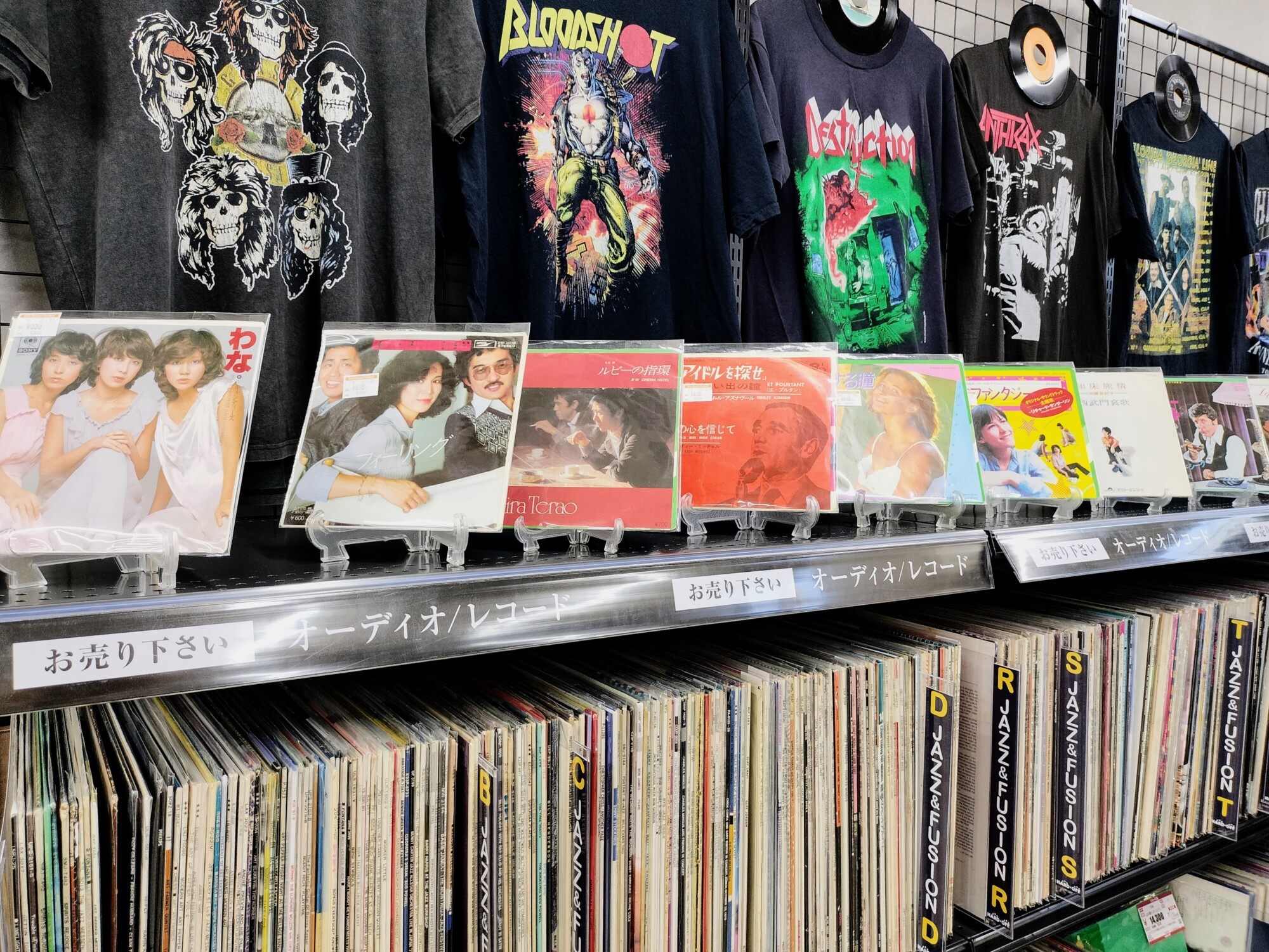 昭和レトロブームも手伝って、最近若い人たちも含めて、レコードが注目されている。レコードプレイヤーもあり、レコードも洋楽邦楽様々なものが並ぶ。