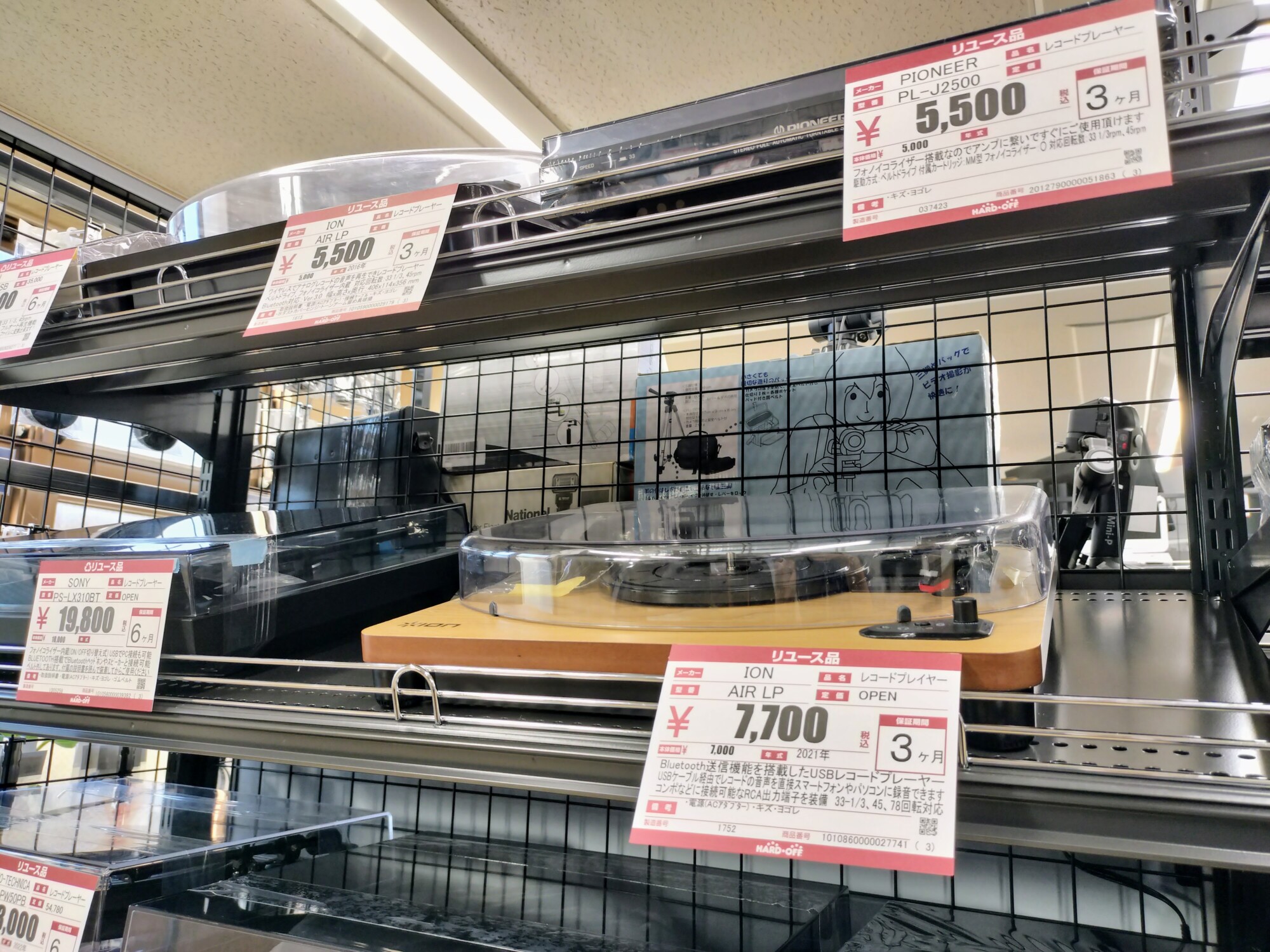 そして「HARD・OFF」のエリアは、楽器、オーディオ機器、パソコン、カメラや工具などが並ぶ。
