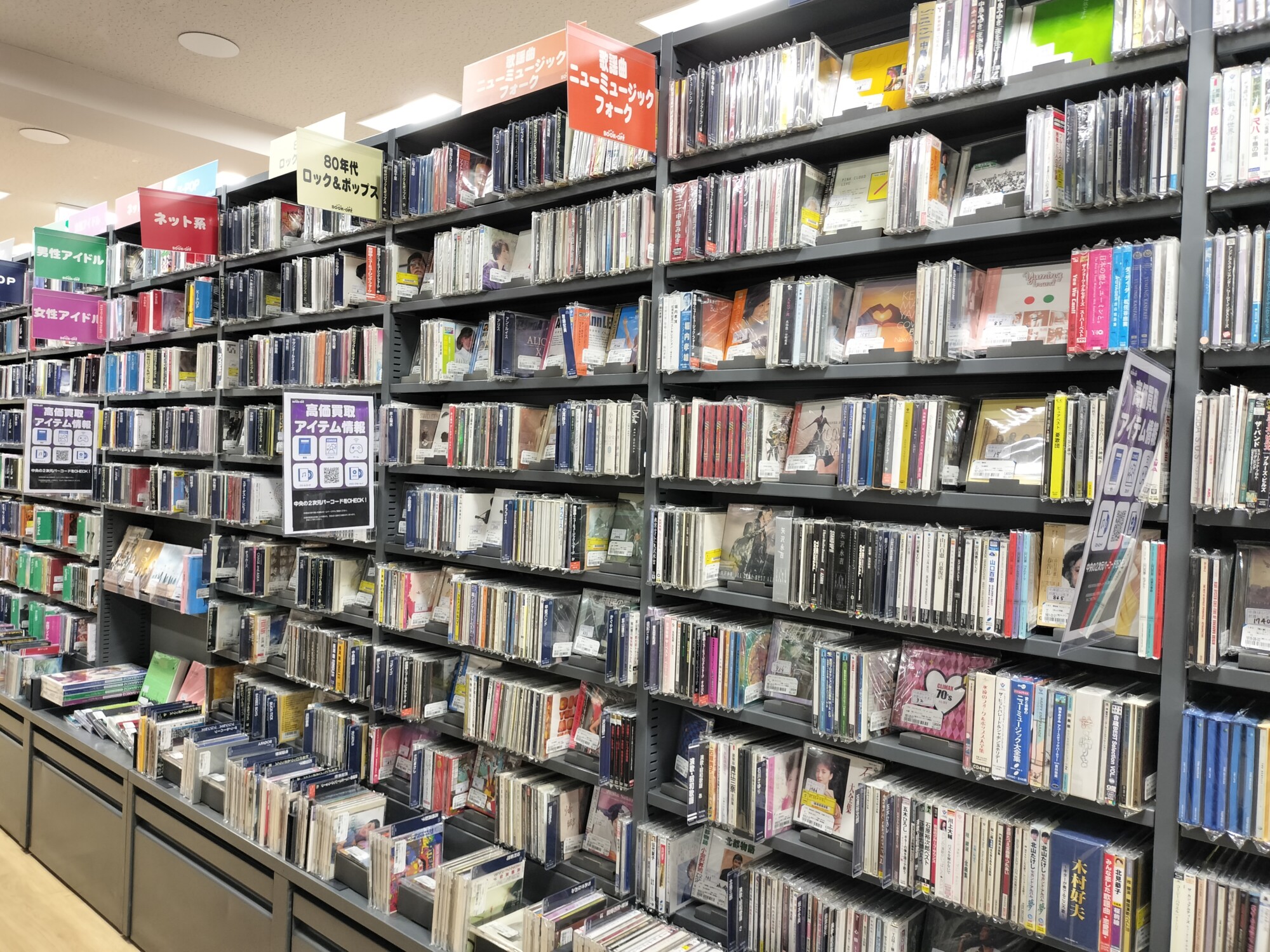 CDやDVDのコーナーも。「80年代ロック&ポップス」「男性アイドル」「女性アイドル」というように分類されている。クラッシックや洋楽も充実。サブスクや配信でダウンロードした音源もいいが、CDとして手元に音源を持っておきたい名曲があるものだ。