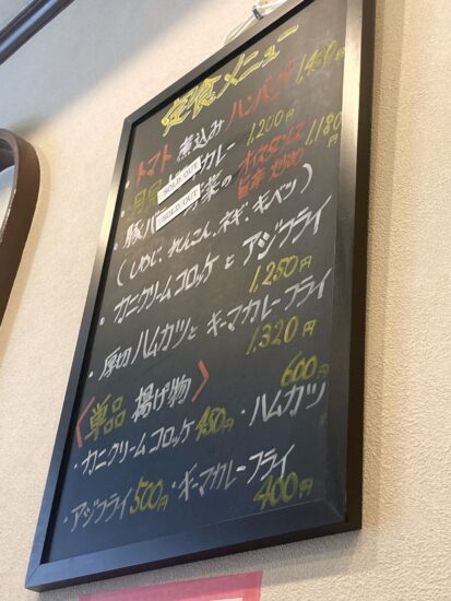 今日はトマト煮込みハンバーグ定食を注文。期間限定メニューだったそうなのですが、常連さんの熱いコールで定番化されたそう。