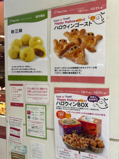 今日のおやつはこの時期しか買えないお芋餡と栗、かぼちゃが入ったモチモチの秋三昧と、ハロウィンのお化けの形をしたデニッシュ。