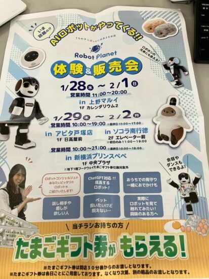 1/29~2/2、ソコラ南行徳にAIロボットがやって来る!【行徳】