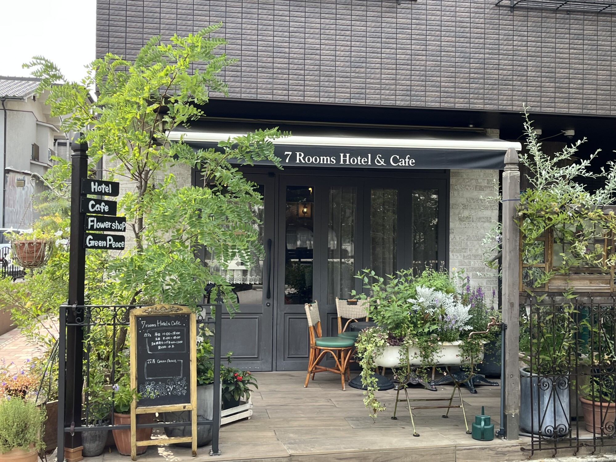 店先のガーデニングがとっても素敵な 「7rooms Hotel&Cafe」は、葛西駅から徒歩10分程の葛西区民館近くにあります。