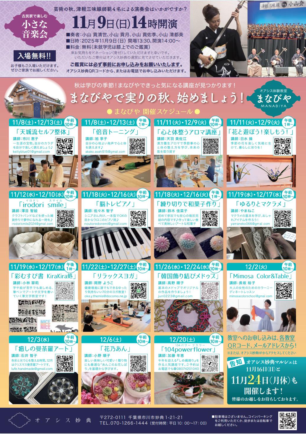この秋から、オアシス妙典の体験教室「まなびや」で、毎月第4水曜日定期講座を開講。
