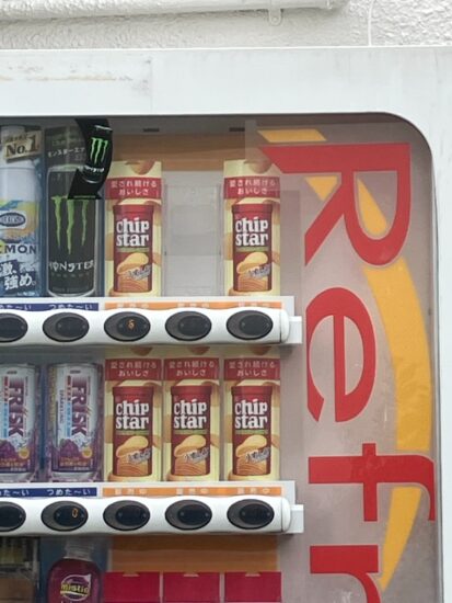 飲み物と一緒にポテトチップスとチョコを販売。 初めて見ましたが、ちょっと便利だなと思いました。