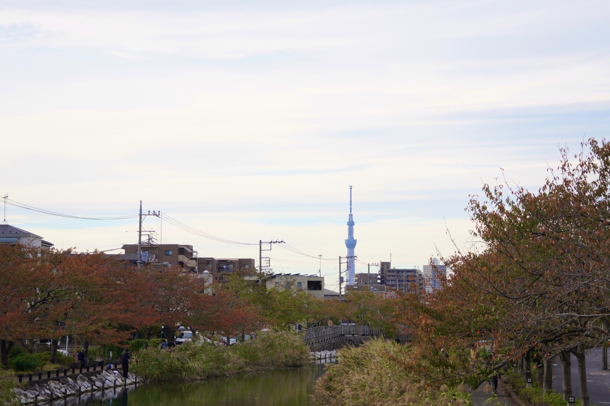 新川さくら館の目の前にある桜橋は、スカイツリーと紅葉が一度に見られる最高の撮影スポット!