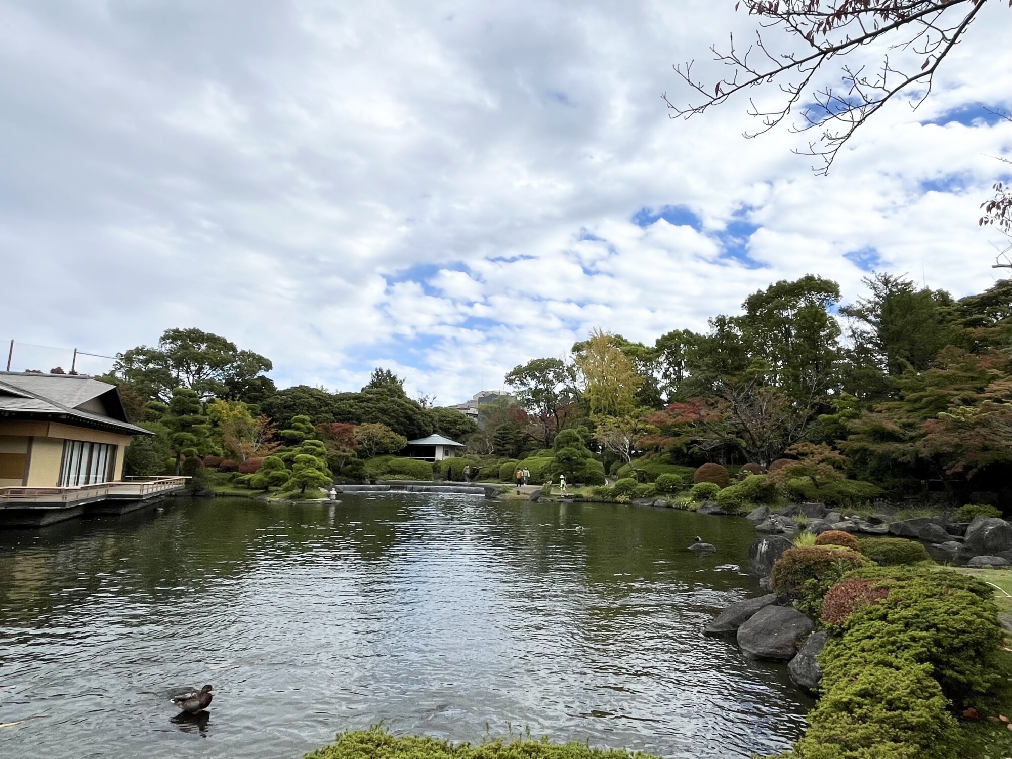中でも、大きな池をぐるっと囲んだ「平成庭園」には数寄屋造りの源心庵があり、紅葉と相まって趣のある風景がみられます。