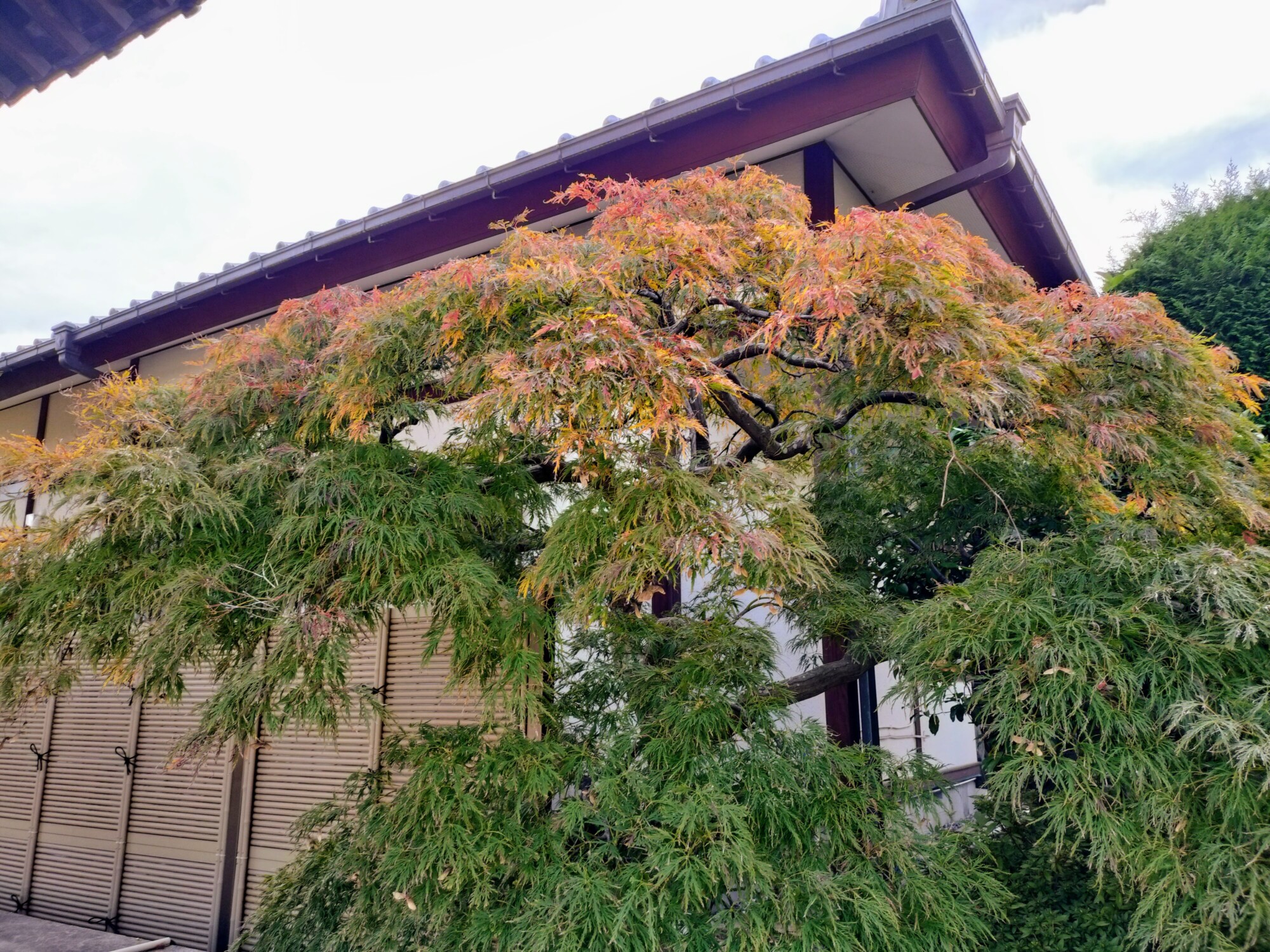慶長16年(1611年)に創建された行徳街道沿いの源心寺。目を見張るほどの大きなイチョウの木がある。撮影時(11月4日)はまだほんのり黄色がかった程度だったが、これから美しく色づいていく。除夜の鐘でおなじみの鐘楼の隣にはモミジもあり、これからが楽しみ。