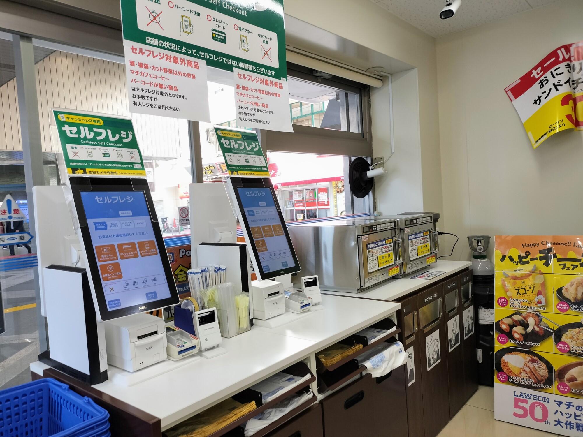 通路が広くとられた店内は、ゆっくり商品を選びながら買い物するのはもちろん、電車の時間を気にしながらササっと買うのにも適している。有人レジのほか、セルフレジも複数あるので、急いでいる時に助かる。