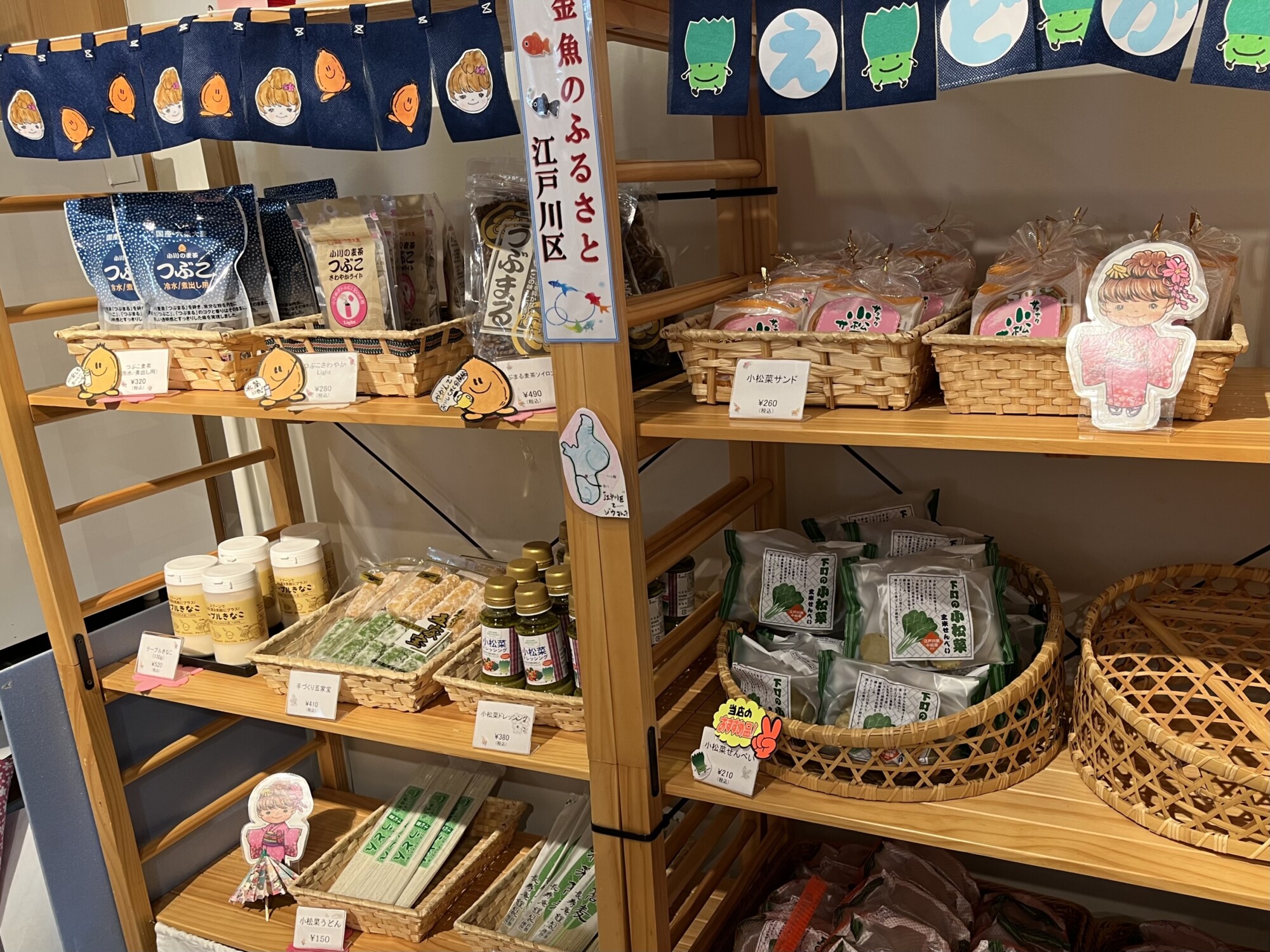 新川さくら館には、お休み処(カフェ)に併設したお土産コーナーがあり、江戸川区特産の商品が沢山あります♪