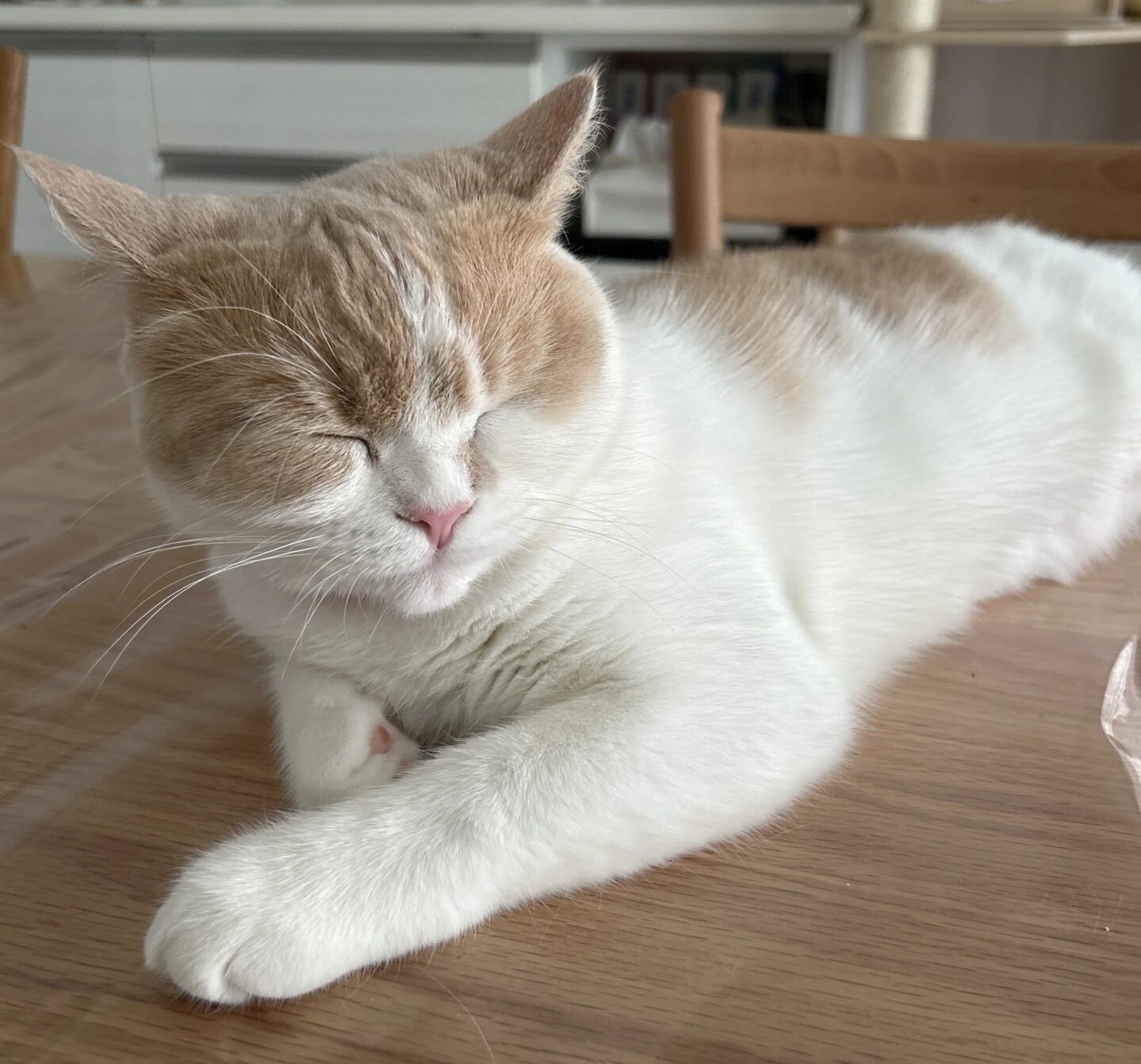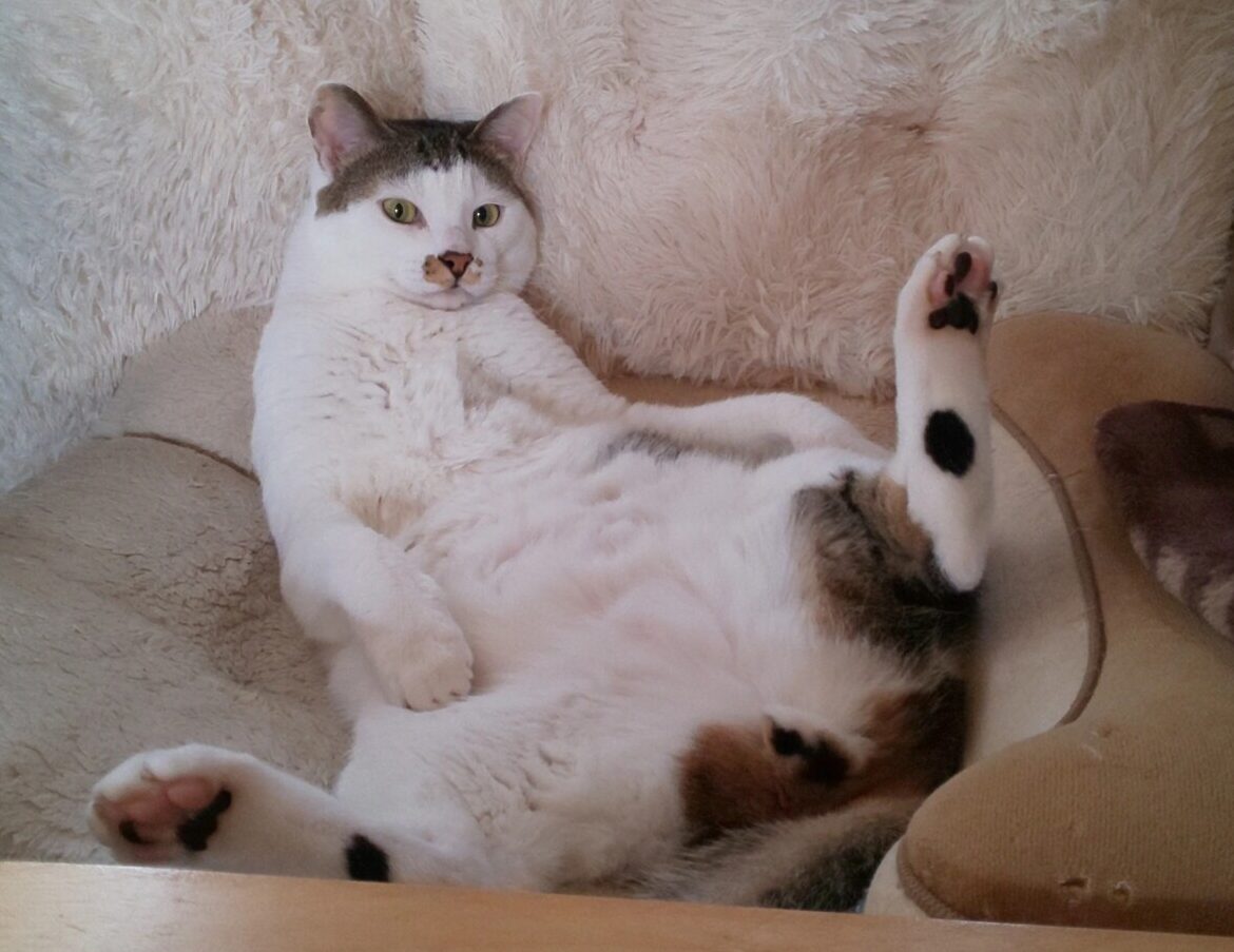 いつものびーんとしていることが多いです。カーペットにコロンとして撫でてと甘えてきます。