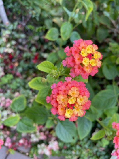 会社の玄関前の花壇でランタナがきれいに咲いています。ランタナは別名「七変化」。これは徐々に花色が変わることに由来しているとか。花言葉は「心変わり」「協力」「合意」「厳格」。最初は小さな花苗だったのに、こんなに大きく育って…、なんか感慨深い。