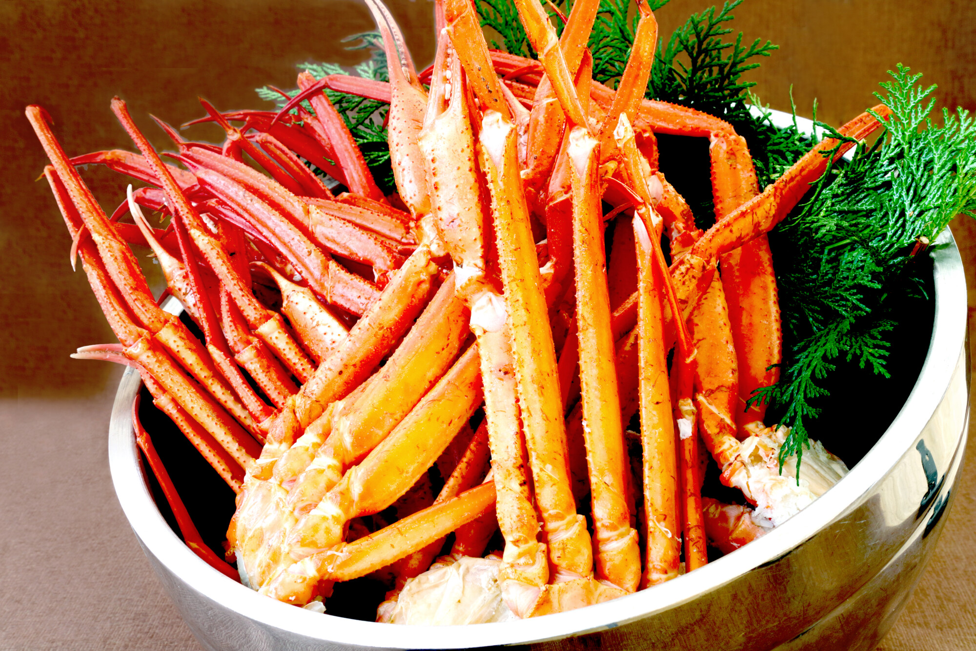 新鮮なズワイ蟹を贅沢に盛り付け、目の前で解凍・提供。食べ放題で存分に楽しめます。