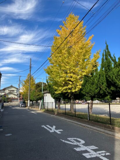 樹木にかこまれ、黄色い滑り台や広場がある北浜公園。 花も植えられているけど、今はイチョウが色づき始めてきました。