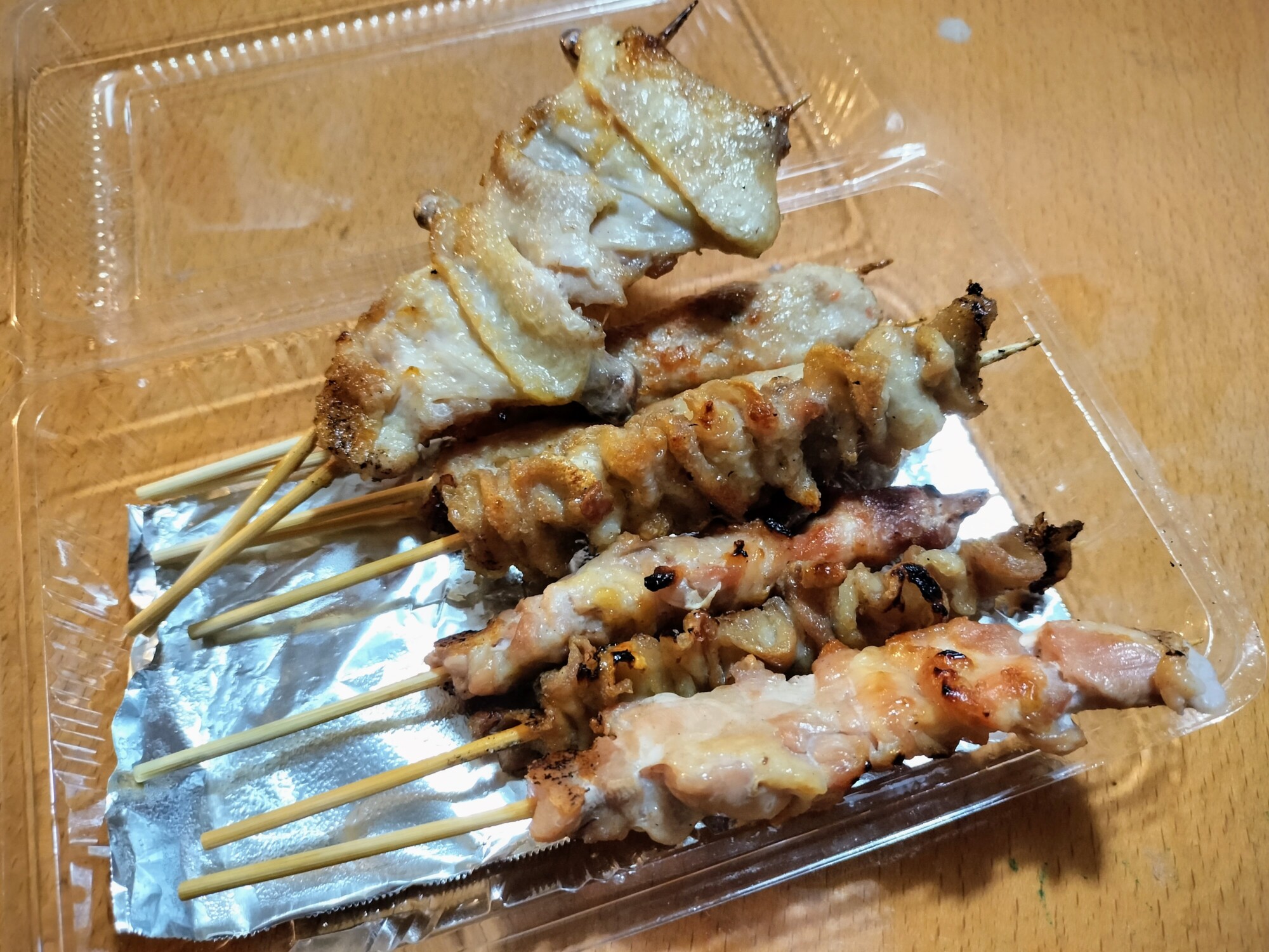 7本入りセットは、種類や味(塩かタレ)は選べない代わりに通常よりお得。この日はつくね、もも、皮が各2本と手羽先が1本を塩で。肉は、柔らかいけど弾力を感じるしっかりした噛み応え。塩分控えめなので肉の旨味がしっかり感じられます。なにより、炭火焼ならではの香りがたまりません! 月替わりメニューもあり、10月は玉ねぎとモモ肉を交互に刺した「とり玉」でした。毎月の楽しみになりそう♪