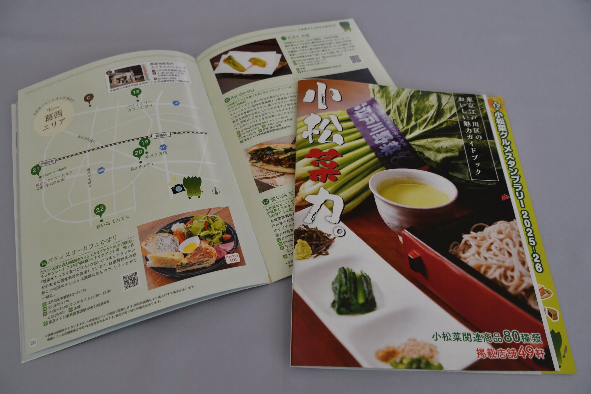 江戸川区は特産品の小松菜の魅力を伝える冊子「小松菜力。」を今年も発行した。小松菜商品を扱う店舗や豆知識などを紹介している。そして、小松菜グルメなどを取り扱う店舗を巡ってシールを集めるスタンプラリーも開催中だ。